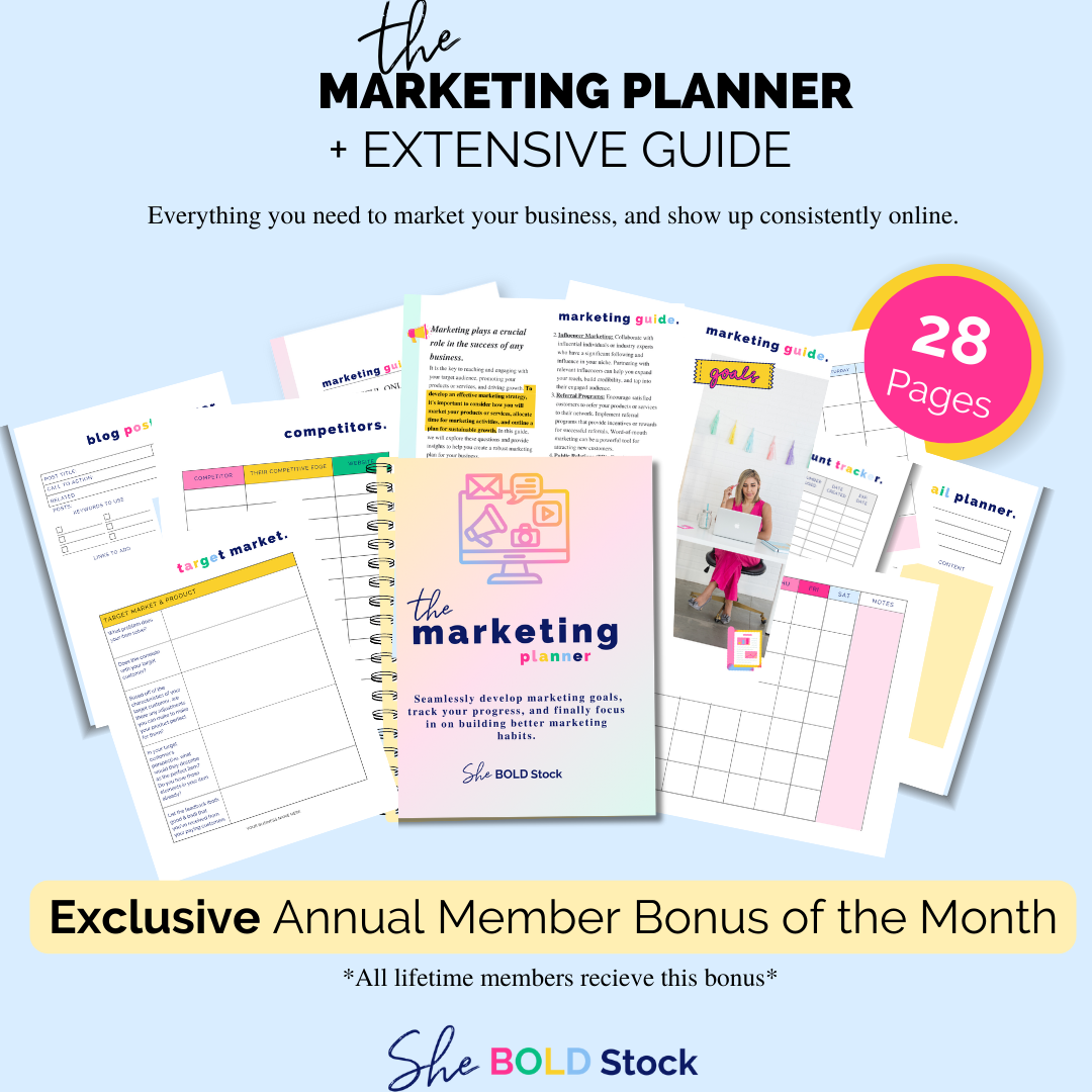 Grab your very own marketing planner to plan out every part of your marketing strategy in one place. Plus a marketing guidebook to get you started on the right track!